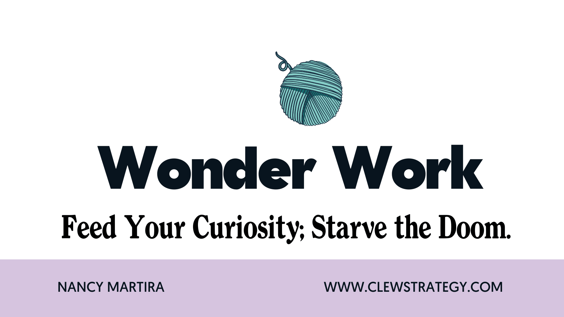 Communications consultant, brand strategist, & Wonder Work creator. Curious about everything from terrible orchestras to happiness algorithms. Feed your curiosity; starve the doom — one small idea at a time. Let's wonder!
